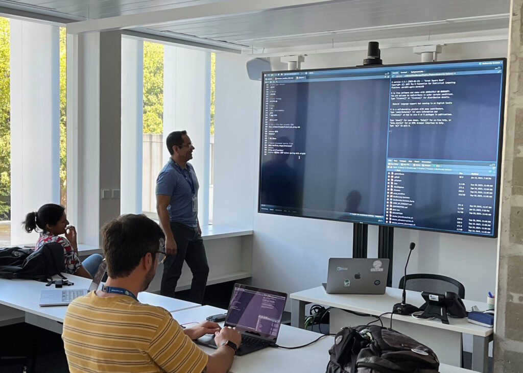 The workshop provided a unique opportunity for SSEC engineers to collaborate directly with scientists on teaching and co-designing software workflows for high-performance computing environments and package development. SSEC worked to run biodiversity exposure models on MareNostrum, BSC’s flagship supercomputer, testing containerized workflows and benchmarking performance across different configurations.